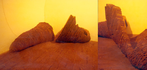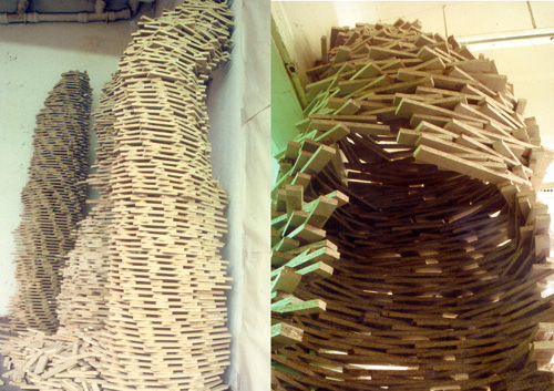 Pomiędzy...III, deseczki, wys. 350 cm, ASP Wydział Rzeźby, Kraków, 1997